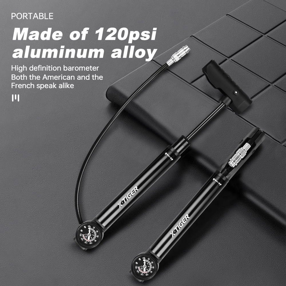 Keep your rides smooth and your equipment ready with this high-pressure bike pump designed for everyday cyclists and sports enthusiasts. Built from durable aluminum alloy, this manual pump delivers up to 120 PSI, making it ideal for inflating bike tires, suspension forks, seat posts, and even sports balls. Compact, lightweight, and easy to carry, it’s the perfect tool to have at home, on the road, or during long-distance adventures.
