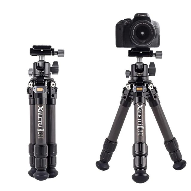 XILETU Lightweight Stable Carbon Fiber Tripod w 360° Rotation Detachable Ball Head Mini Tabletop Stand For Digital Cameras DSLRS