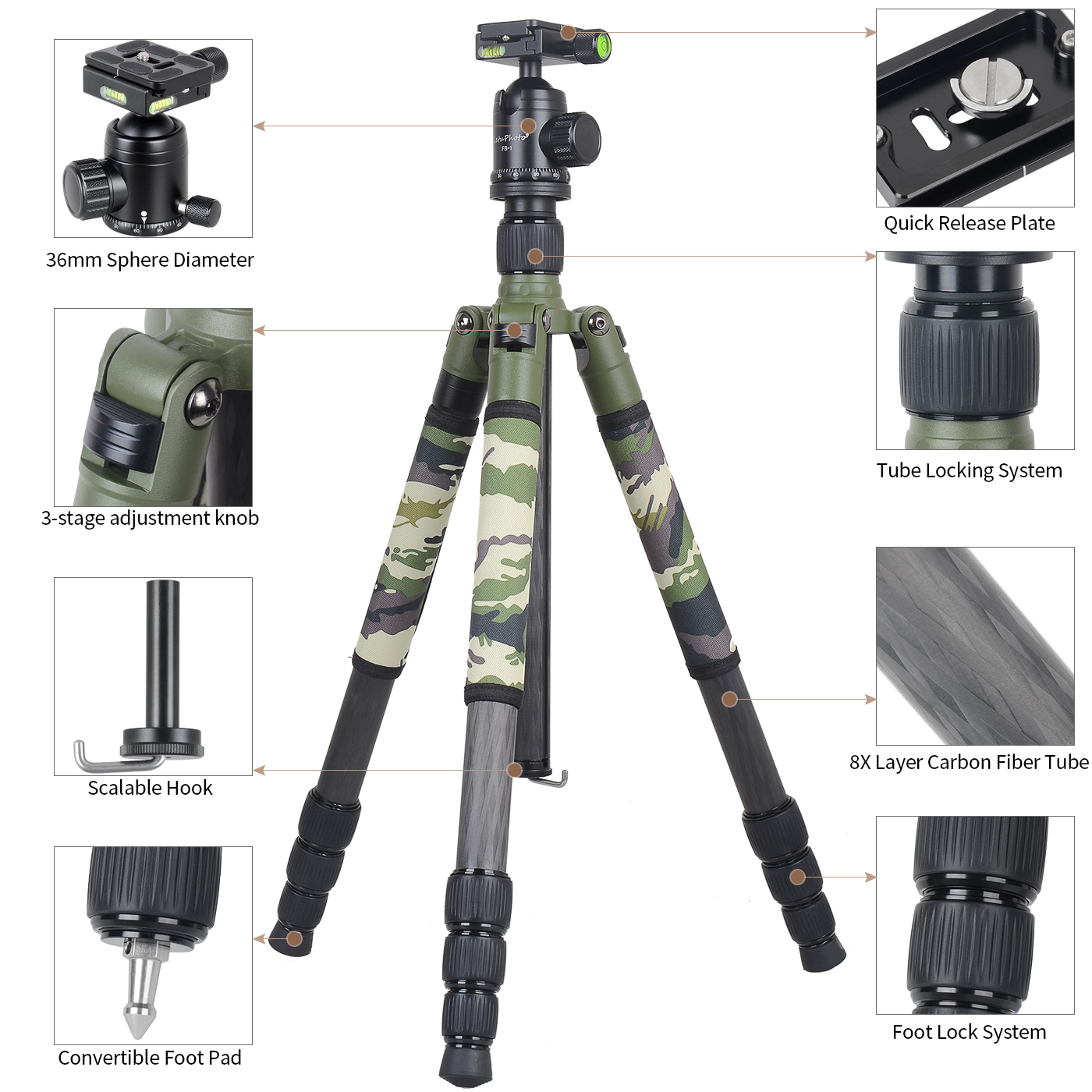 Take your photography, videography, or outdoor adventures to the next level with this professional carbon fiber tripod. Designed for those who demand stability and flexibility, this tripod ensures smooth performance whether you’re capturing breathtaking landscapes, shooting detailed wildlife, or setting up for a steady hunting rest. Its carbon fiber build keeps it lightweight yet incredibly strong, making it a dependable companion for both travel and field use.