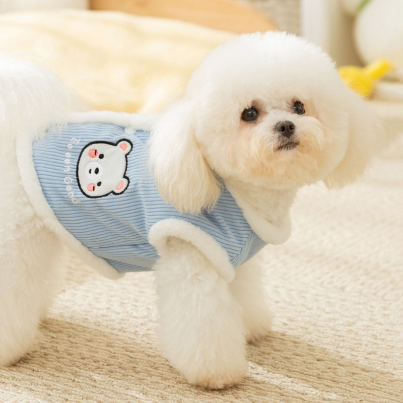 Crafted from soft polyester fiber with a thick fleece lining, this vest keeps your pet snug without restricting movement. The corduroy exterior adds durability and a touch of classic style, while the cartoon bear design gives a playful charm that’s impossible to resist. It’s lightweight yet warm, ideal for dogs who enjoy both indoor lounging and outdoor adventures in cold weather.