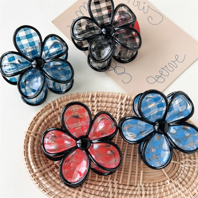 This gingham check hair claw clip is designed to be both functional and fashionable. Whether you’re at home, out with friends, or running errands, this hair claw will keep your hair in place while adding a bit of fun and flair to your look. Its classic flower shape and gingham check design offer a timeless aesthetic that pairs effortlessly with any casual outfit, from jeans to dresses.