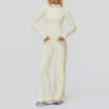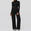 The long-sleeved top provides lightweight coverage that’s perfect for cooler seasons, while the high-waist leggings create a secure, flattering silhouette that supports your core during every squat, stretch, and step. Featuring quick-dry technology, anti-pilling fabric, and excellent shape retention, this set is built to keep up with your active lifestyle while maintaining its sleek, solid-color look.
