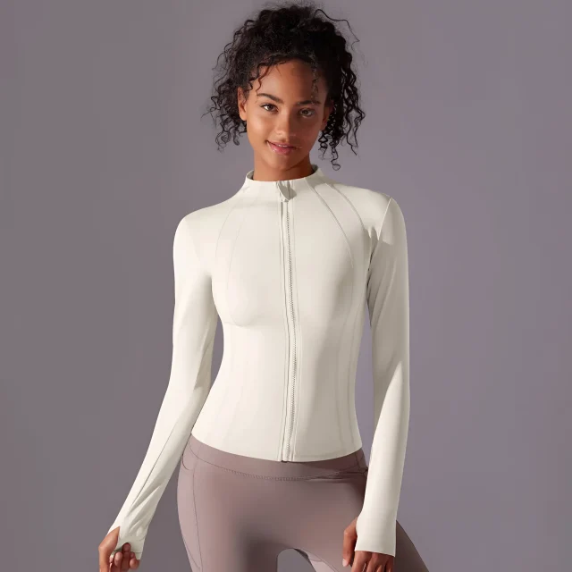 This jacket is best used during yoga, Pilates, gym training, running, hiking, or any outdoor fitness activity. It transitions effortlessly from workout wear to everyday athleisure, so you can move from studio to street without changing outfits. With no bulky pockets and a clean, minimal look, it pairs easily with leggings, shorts, or joggers.