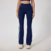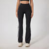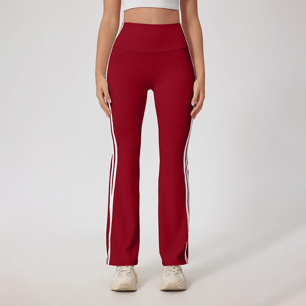 The elastic high-waisted band offers a secure, comfortable fit that moves with you, while the wide, flared legs give you extra freedom and flow. Made from a blend of nylon and spandex, these leggings provide excellent stretch and support, ensuring you stay comfortable through even the most intense workout routines. The striped design adds a trendy touch, making these leggings perfect for both fitness and fashion.