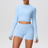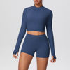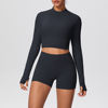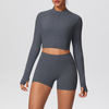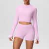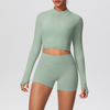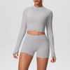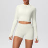 This long sleeve top and matching leggings are perfect for year-round use. Wear them in summer for early morning workouts or layer them in cooler months for added warmth. The seamless, solid-color design offers a clean, modern look that transitions effortlessly from workout to casual wear.
