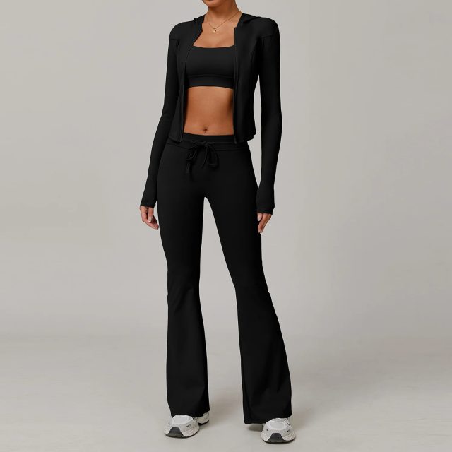 Women’s 3-Piece Yoga Set Long Sleeve Sports Bra & Leggings