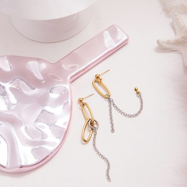 Discover a pair of earrings designed to bring effortless elegance to your daily look. These long chain dangle earrings feature a delicate geometric design that adds a modern touch to any outfit. Crafted from high-quality stainless steel and finished in a radiant gold tone, they offer a sleek blend of durability and sophistication. With their lightweight feel and fashion-forward shape, they are perfect for women who love timeless style with a trendy twist.