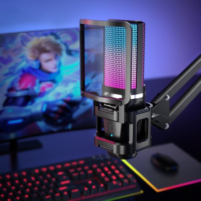 Zealsound RGB Recording Microphone With Articulated Arm/USB Condenser Mic with Tripod For Gaming Podcasting Streaming Youtube