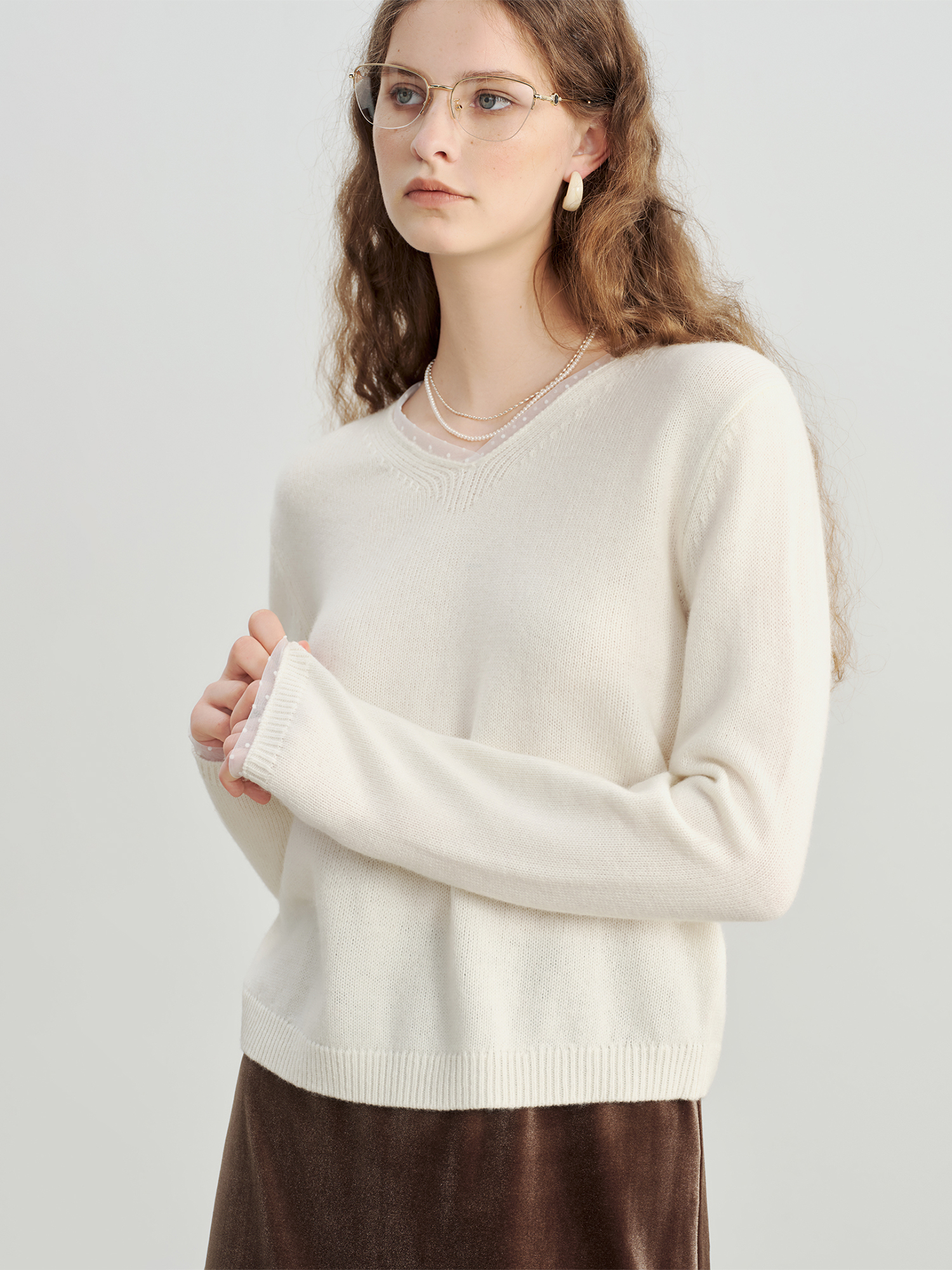 This knit top stands out because of its thoughtful blend of materials and elegant design. It’s made with a premium mix of nylon, wool, and acrylic, which makes it soft on the skin while still warm and breathable. The lace V-neck adds a romantic touch without feeling too dressy, making it perfect for both work and casual outings.