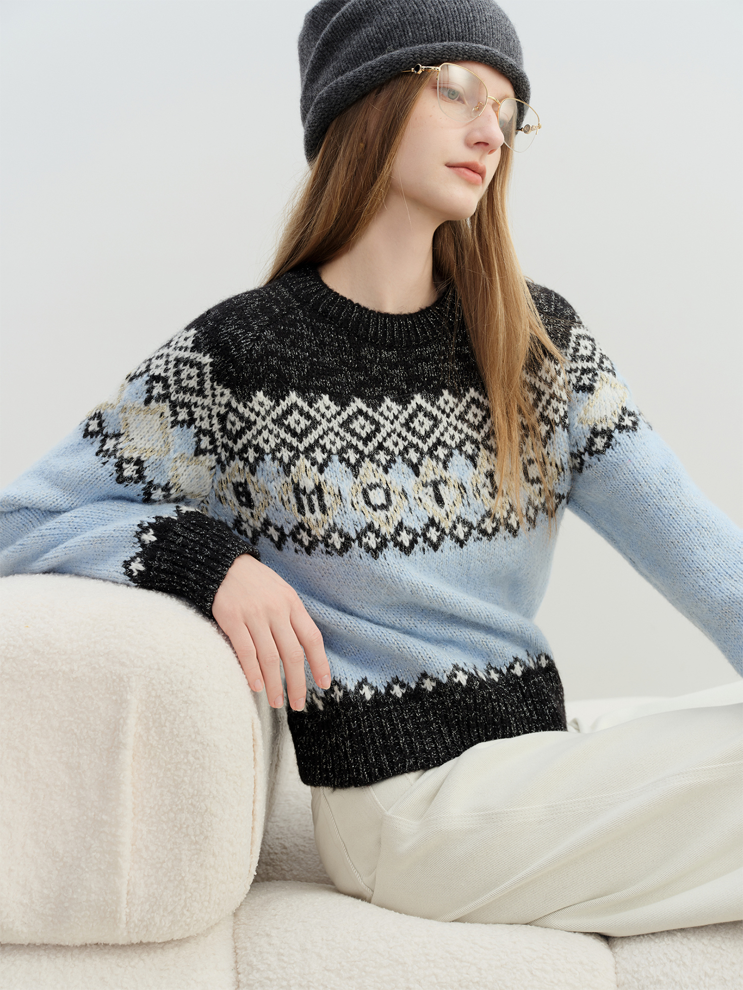 The subtle Fair Isle argyle pattern gives it a cozy, European feel that looks just as good with jeans as it does with skirts or tailored pants. The crew neckline keeps the look classic and easy to style with scarves, coats, or blazers.