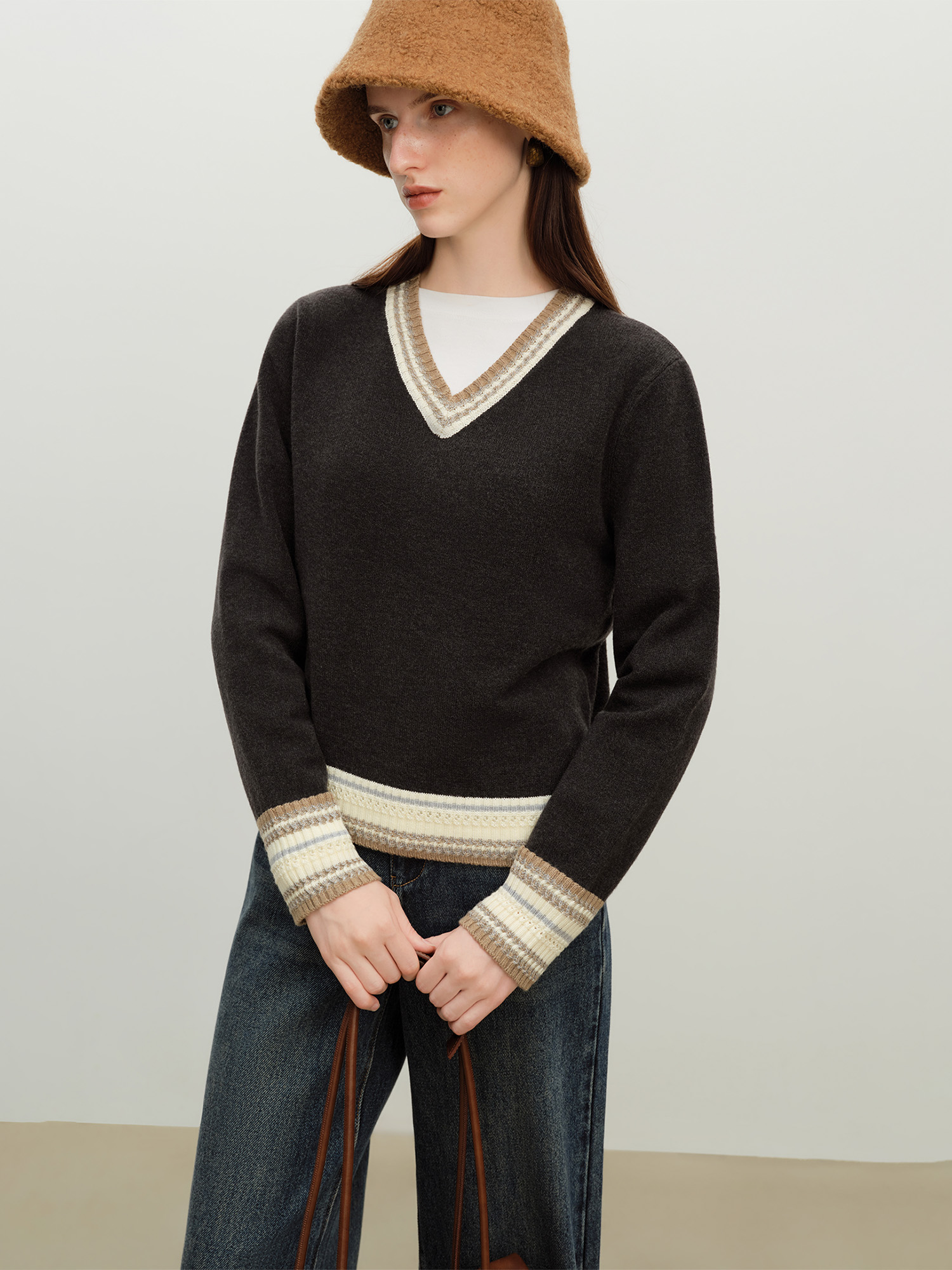 Stay warm, polished, and effortlessly stylish with this petite V-neck color block knit sweater designed for modern women who want comfort without sacrificing elegance. Inspired by classic college style, this piece blends timeless design with a soft chunky knit feel that’s perfect for cooler weather. The relaxed silhouette and flattering V-neck make it easy to wear on busy office days, cozy weekends, or casual outings.