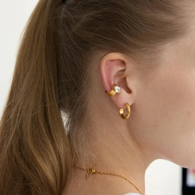 Whether you’re adding a new piece to your jewelry collection or searching for the perfect gift, these earrings are sure to impress. Elevate your style and shine with these elegant 18K Gold-Plated Ribbed C-Shape Earrings.