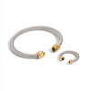 Step into elegance with this stunning minimalist bracelet featuring natural green malachite stone set in an open ring design. Crafted with 18K PVD gold-plated stainless steel, this two-tone piece blends modern sophistication with timeless charm. The ribbed detailing adds a unique touch, making it the perfect balance of subtlety and statement. Designed to complement any outfit, this bracelet is a versatile accessory you’ll reach for again and again.
